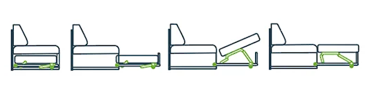 Наполнитель дивана ППУ + пружинный блок «Змейка». Пружины крепятся внутри деревянного каркаса. Толщина ППУ 30 мм. Используется как смягчающий и опорный материал.