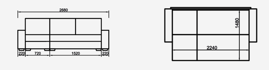 Габариты: 2.68 х 1.03 м.