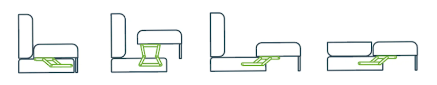 Наполнитель дивана ППУ + пружинный блок «Змейка». Пружины крепятся внутри деревянного каркаса. Толщина ППУ 30 мм. Используется как смягчающий и опорный материал.